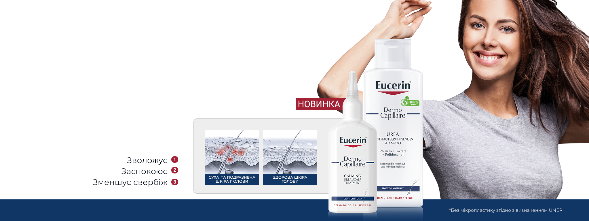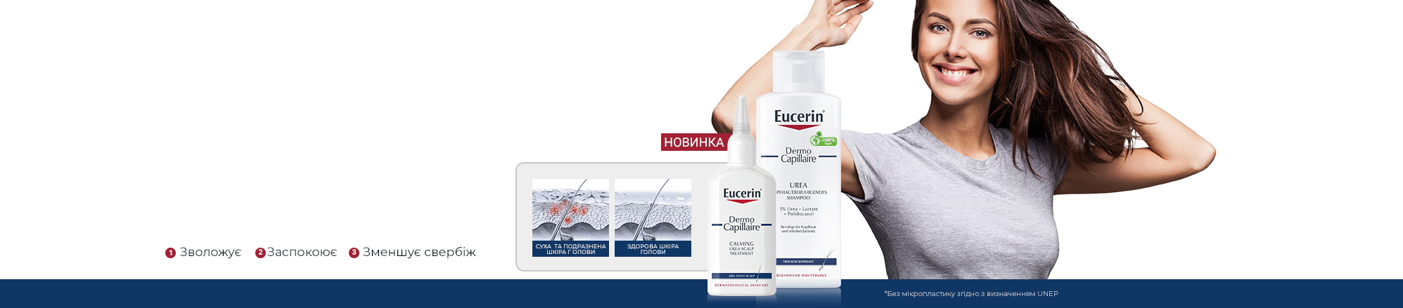 Нова серія Eucerin DermoCapillaire позбавлює шкіру голови від мікрозапалень, що є ключовим фактором для таких проблем, як лупа, суха шкіра голови, що свербить, чутлива шкіра голови та деякі форми випадіння волосся. Шампуні та засоби по догляду за шкірою голови відновлюють здоровий баланс шкіри та доглядають за волоссям від коренів до кінчиків.