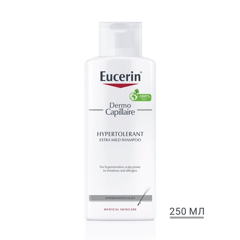 Так, шампунь Eucerin DermoCapillaire спеціально розроблений для людей із гіперчутливою шкірою голови.