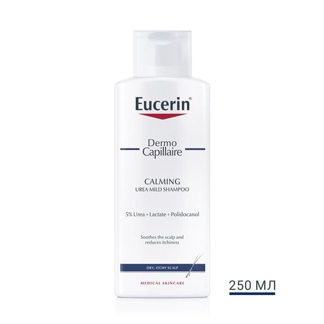 Так. Заспокійливий шампунь Eucerin DermoCapillaire UREA ідеально підходить як засіб додаткової терапії для таких шкірних захворювань, оскільки він не містить подразників чи агресивних очищувальних речовин. Крім того, він містить два зволожуючі компоненти, сечовину і лактат, а також заспокійливий полідоканол, що допомагає полегшити сухість, свербіж і подразнення.