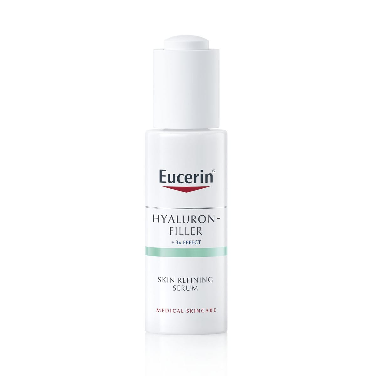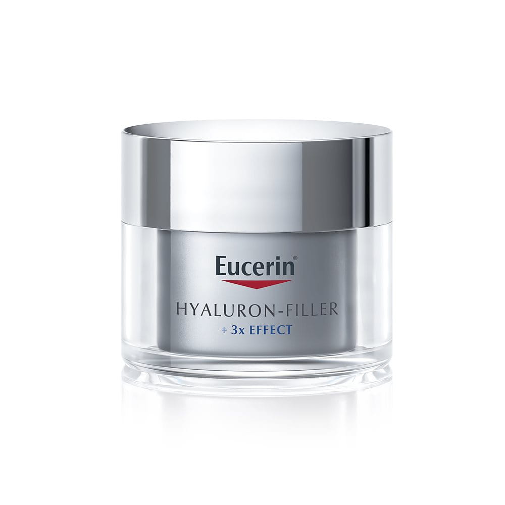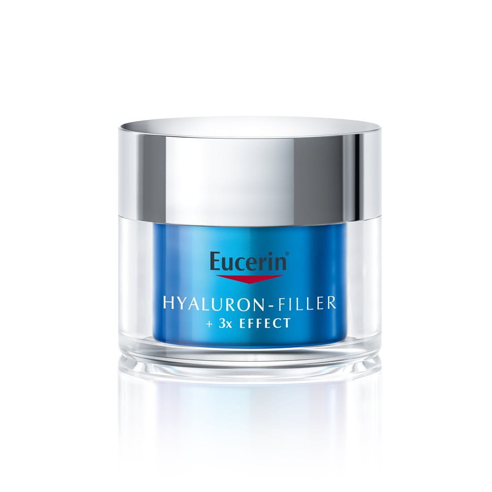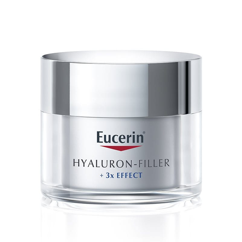 Серія Eucerin Hyaluron-Filler з 3x ефектом включає денні креми (SPF 15 і SPF 30), нічний крем і крем для шкіри навколо очей. Для додаткового догляду вона містить: концентрат, нічний пілінг і сироватку, два ефективних бустери, маску для обличчя та антиоксидантну сироватку.