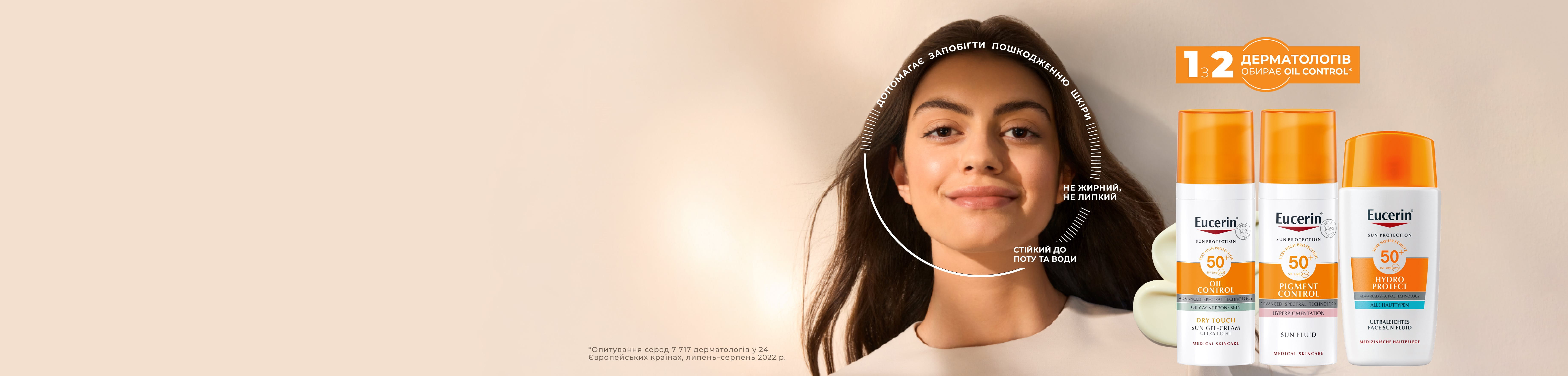 Серія сонцезахисних продуктів Eucerin пропонує комплексний захист від шкідливого впливу сонячних променів: сонцезахисні креми для кожного типу шкіри. Всі продукти серії забезпечують високоефективну фотостабільну систему UVA- та UVB-фільтрів і захист клітин шкіри, більшість також пропонують захист ДНК.