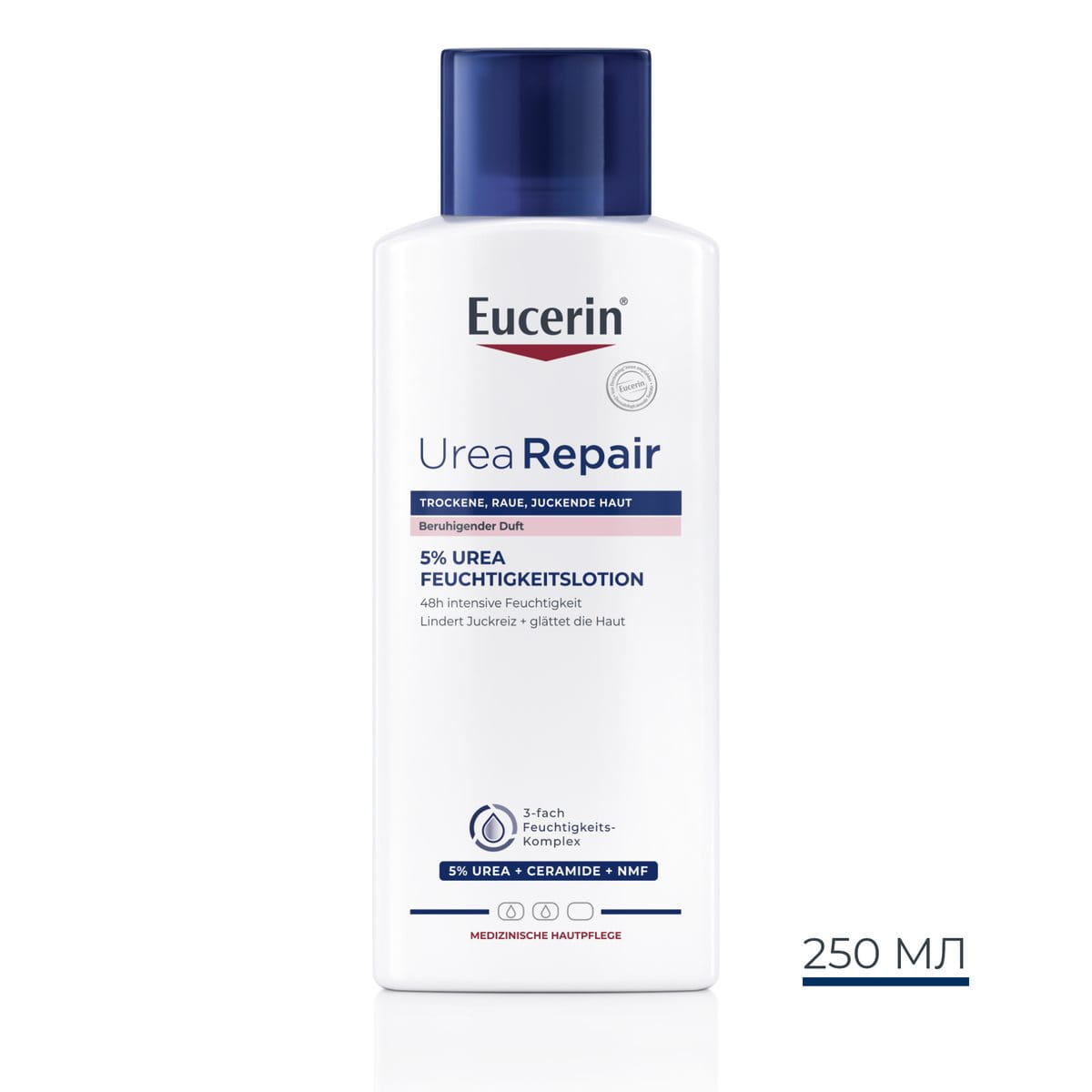 Продукти з легким ароматом у лінійці Eucerin UreaRepair — пінка для душу Eucerin UreaRepair та""5% Урея Ріпеір"" Зволожуючий лосьйон для сухої шкіри тіла з ніжним парфумом – поєднують доведену ефективність із ніжним, заспокійливим і лагідним до шкіри ароматом. Він не містить парфумів, не викликає алергію та добре переноситься сухою чутливою шкірою. Тож тепер ви можете насолоджуватися ефективним доглядом і приємним ароматом.