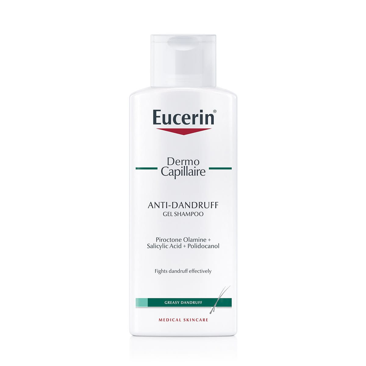 Використовуйте шампунь проти лупи для жирної шкіри голови Eucerin DermoCapillaire або шампунь проти лупи для сухої шкіри голови Eucerin DermoCapillaire Urea для того, щоб вимивати відлущені часточки, не подразнюючи шкіру голови.